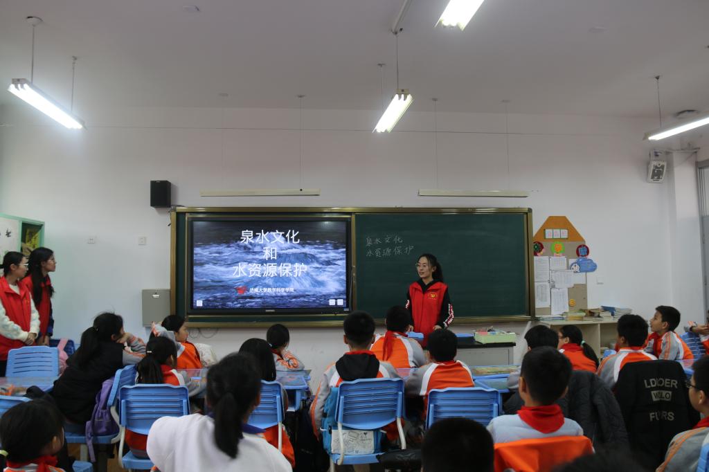 此次延时课堂,由获得第六届中国青年志愿服务项目大赛铜奖的项目“清泉之行——水资源保护志愿服务宣教项目”负责,项目成员曾多次前往济南市多所学校进行授课,普及“节水护水”知识。志愿者们通过主题宣讲、PPT展示、寓意动画、发放图册、互动游戏等形式,围绕济南泉水概况、什么是泉水净化等向小学生们生动形象地介绍了水环境保护和泉水保护小知识,倡导小学生们珍惜水资源,保护水环境,建设幸福泉水之城。