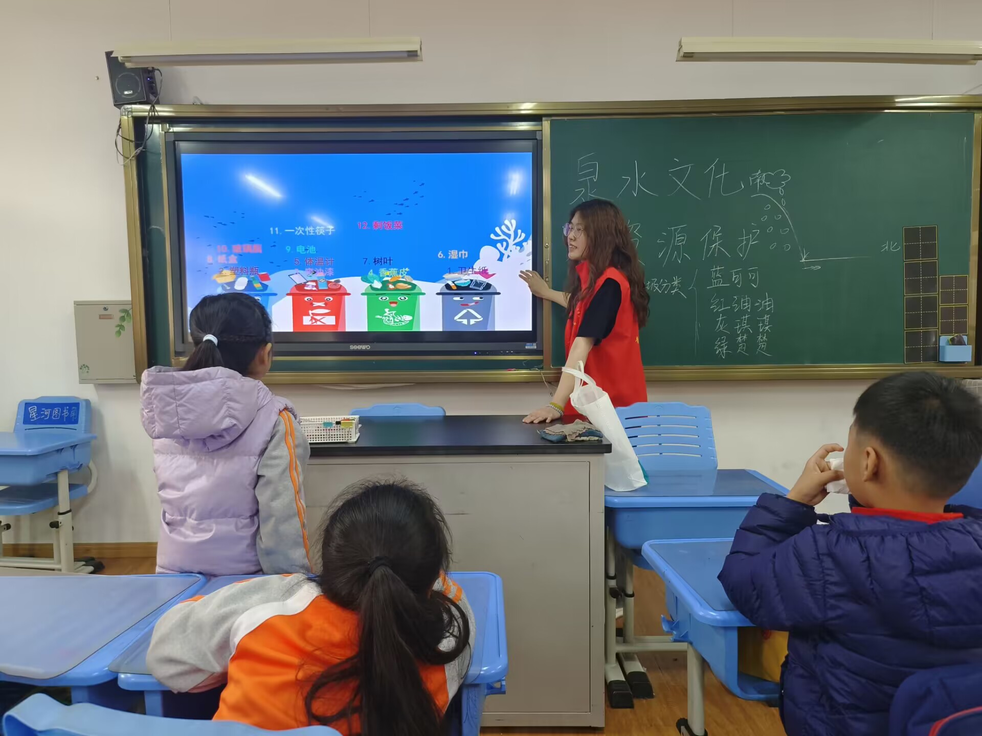 为丰富大学生社会实践活动,贡献青年力量,助力宣传保护泉水和垃圾分类,万象城体育awcsportallwincity万象城青年志愿者协会于4月11日下午来到万象城体育awcsport基础教育集团(舜文)开展第三次授课宣传活动。