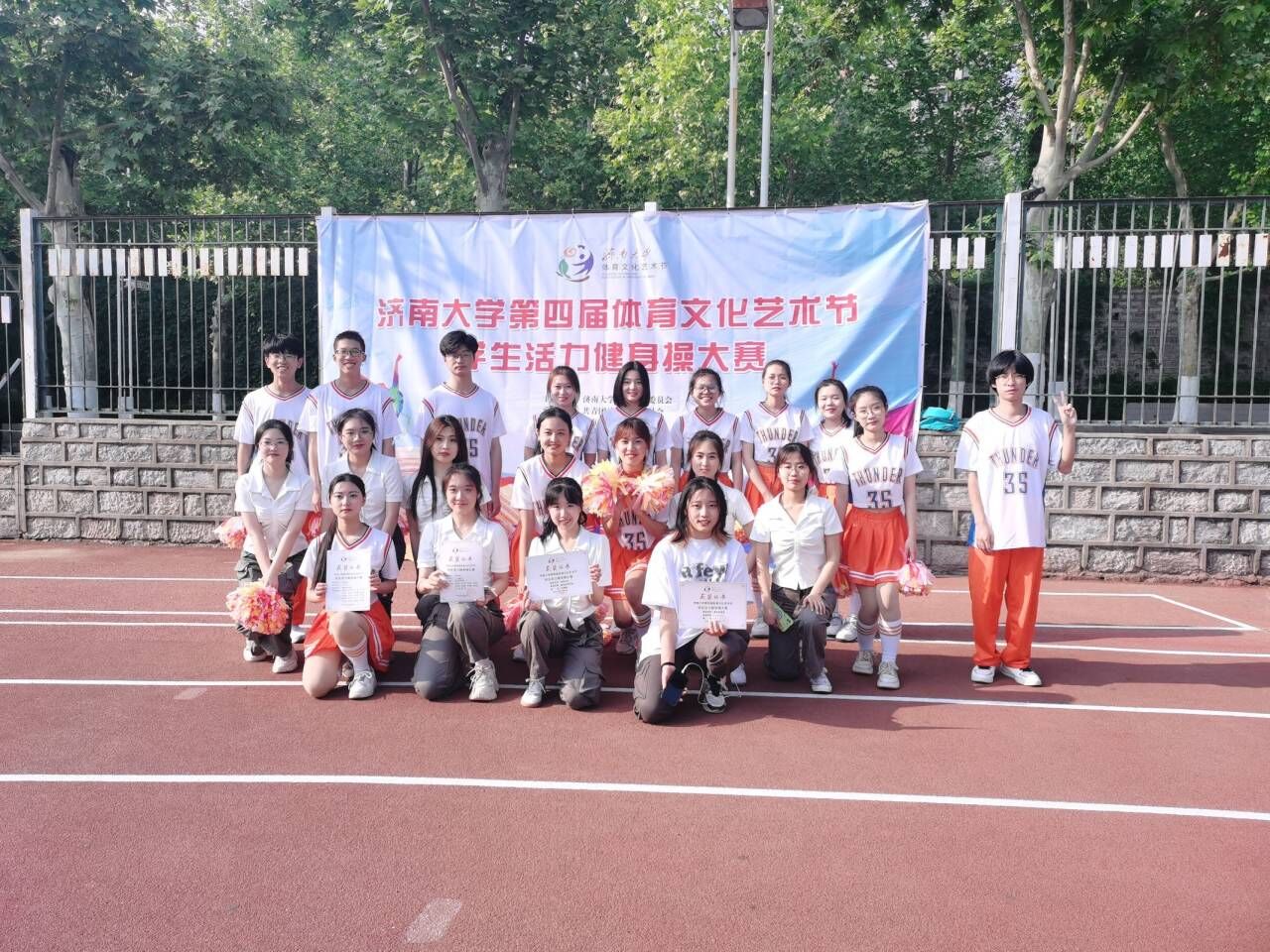 固定动作表演完后,自选动作的同学们也做好了准备,明快奔放的动作、鲜明的节奏感向大家展示了青春的激情,展示了力与美的结合。整个比赛过程精彩纷呈,现场观众热情高涨、气氛热烈,参赛队友们活力十足、朝气蓬勃,精彩的表演取得了9.01的分数,荣获二等奖。