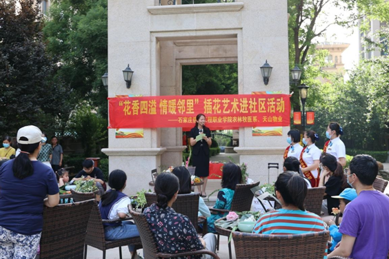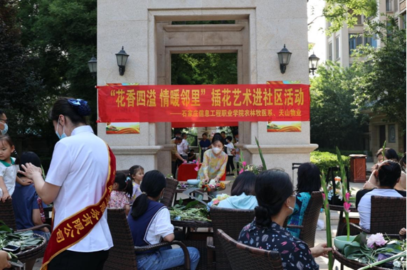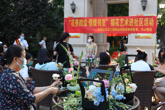 5月28日下午,石家庄信息工程学院农林牧医系走进社区,在正定新区天山熙湖举办了“花香四溢,情暖邻里”插花艺术进社区的活动。这次活动隶属于整个beat365中文官方网站职教周的一部分,也是省职教周的一个分支,目的是向社会宣传职业教学。
