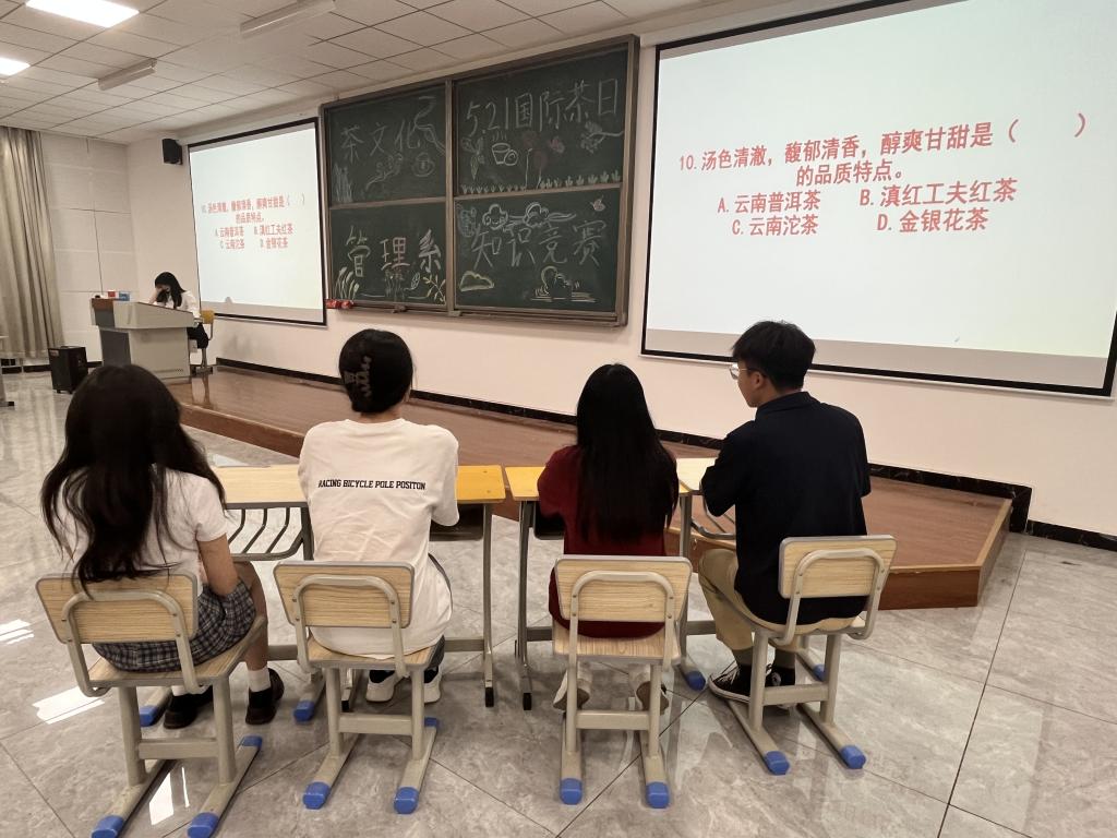 为迎接5.21“国际茶日”,巩固学生的专业知识,丰富茶艺文化第二课堂,促进学生之间专业知识的交流和学习,5月17日,管理系在知新2号楼310教室开展“茶艺知识竞赛”主题活动。