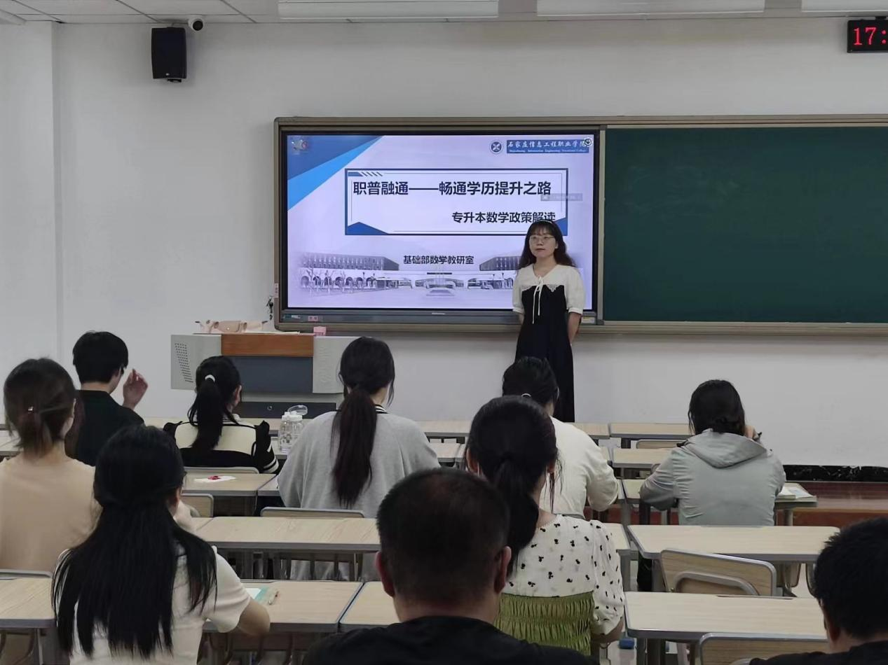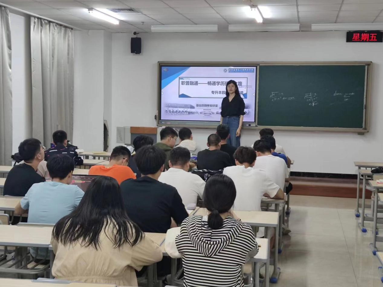 2023年5月19日,基础部数学教研室王路平、聂玺凝老师在启智楼为beat365官网大一同学进行了专升本数学专题讲座。