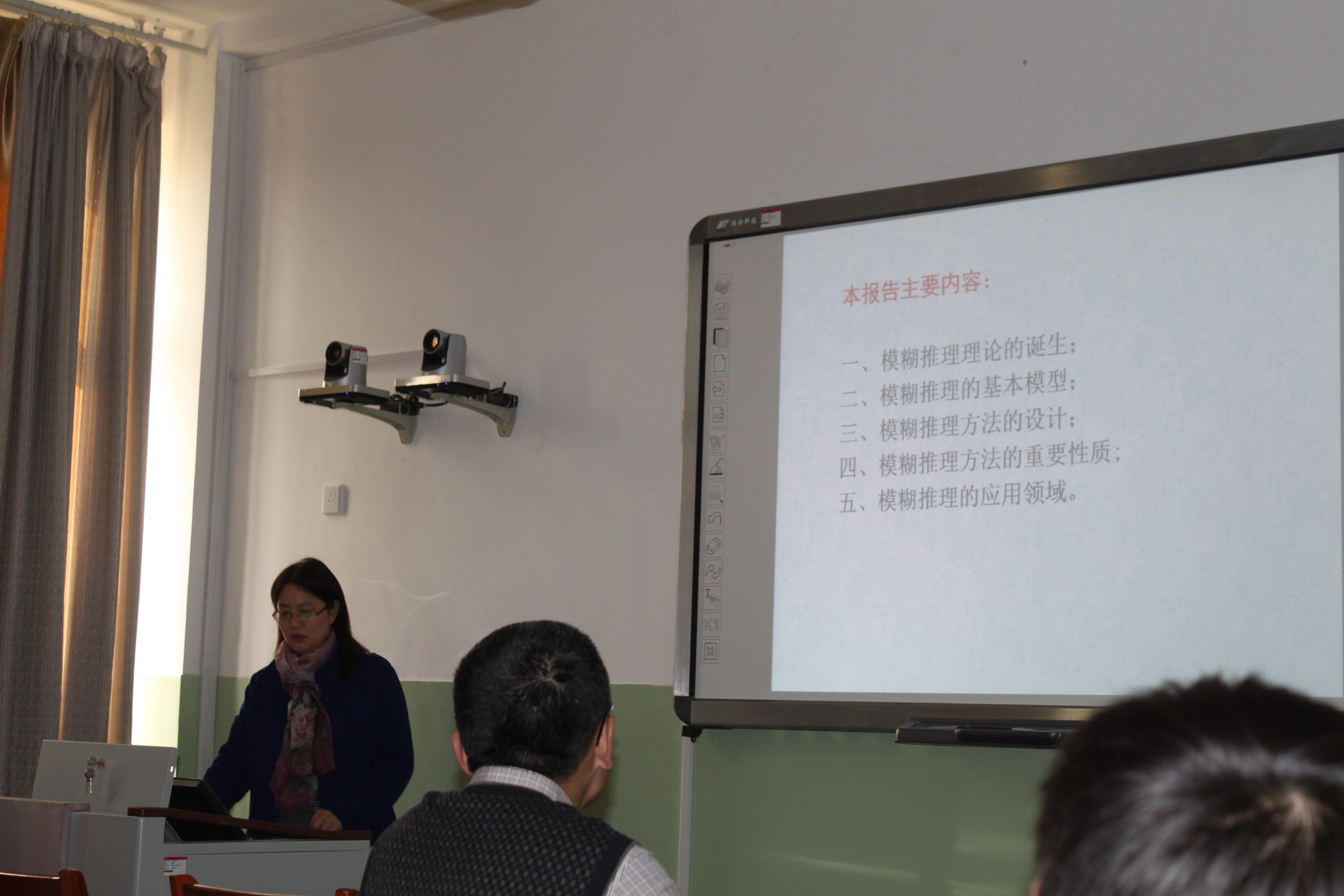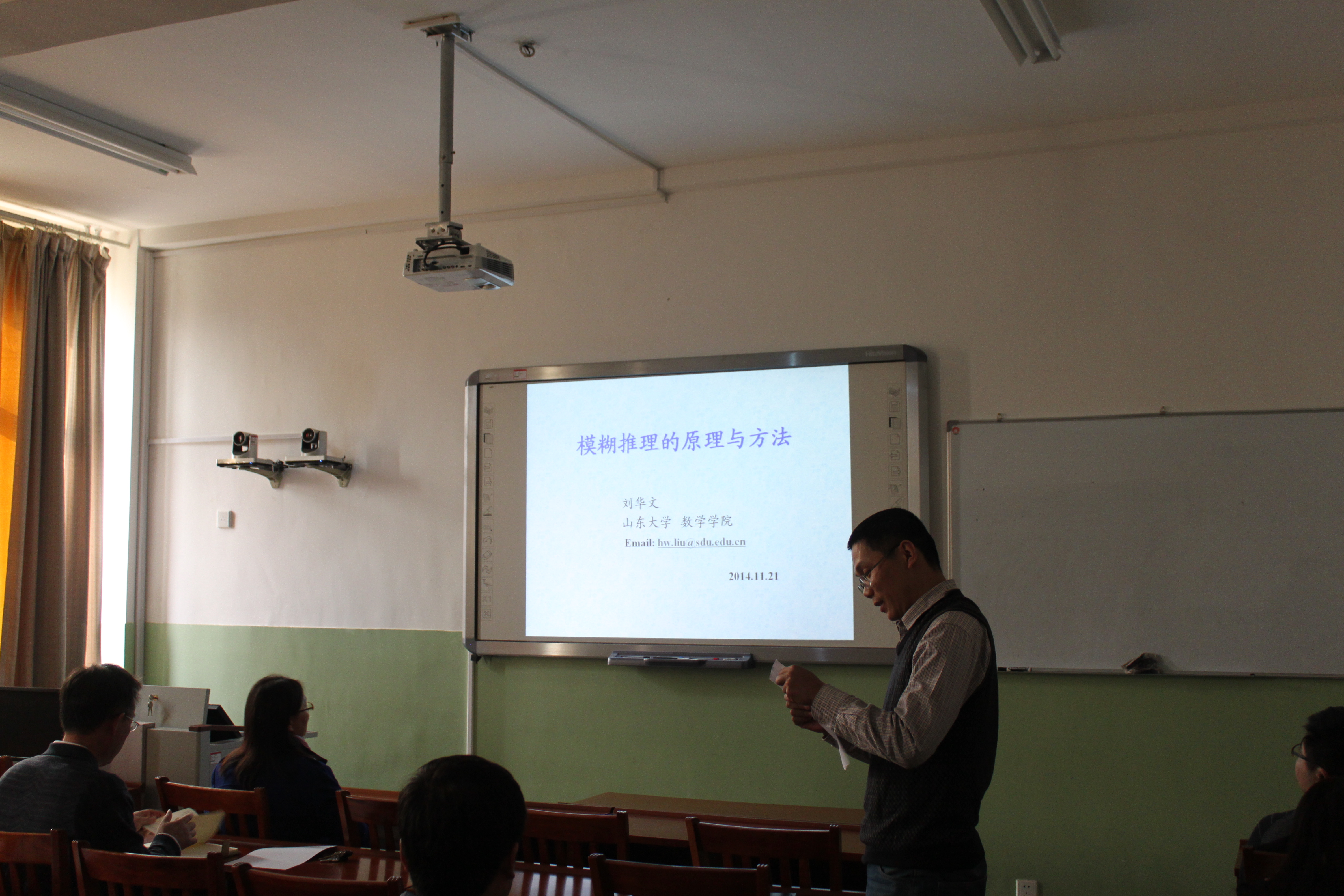 11月21日,山东大学数学学院教授、博士生导师、控制与系统科学研究所所长刘华文教授应邀来我校参观访问,并在allwincity万象城微格教室做了题为《模糊推理的原理与方法》的学术报告,数学院教师和研究生30余人参加了本次报告会。