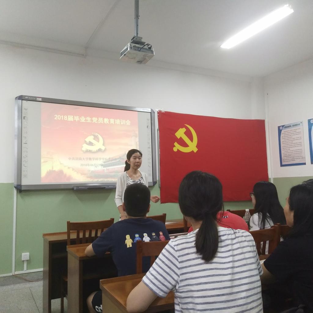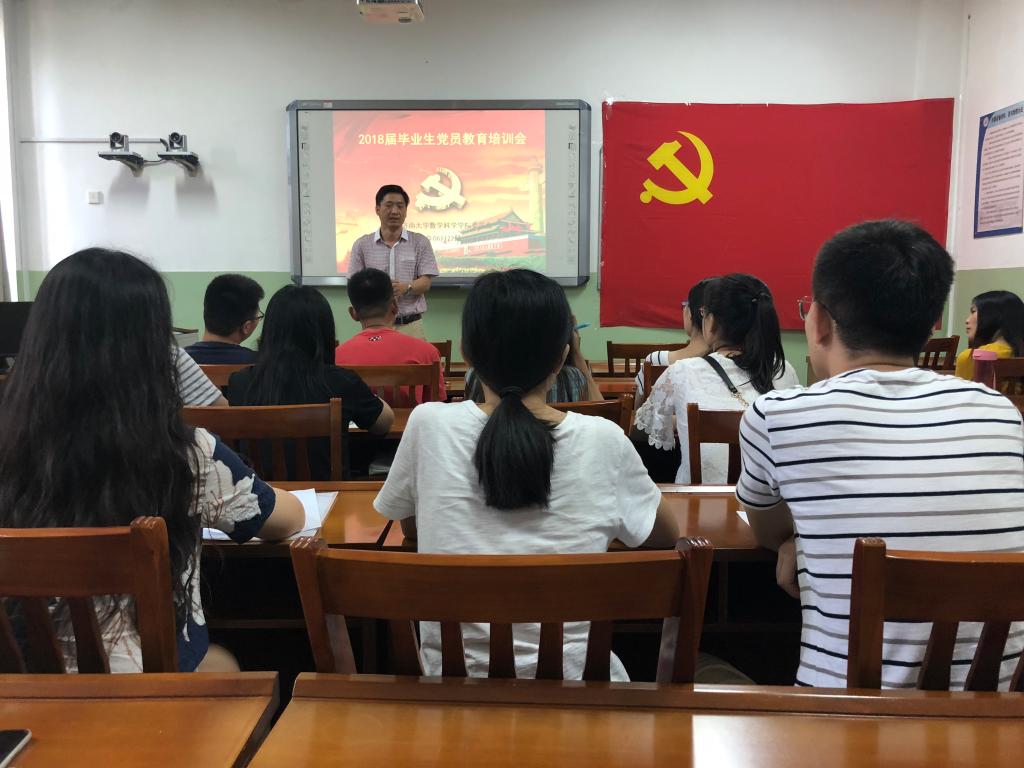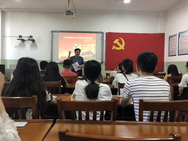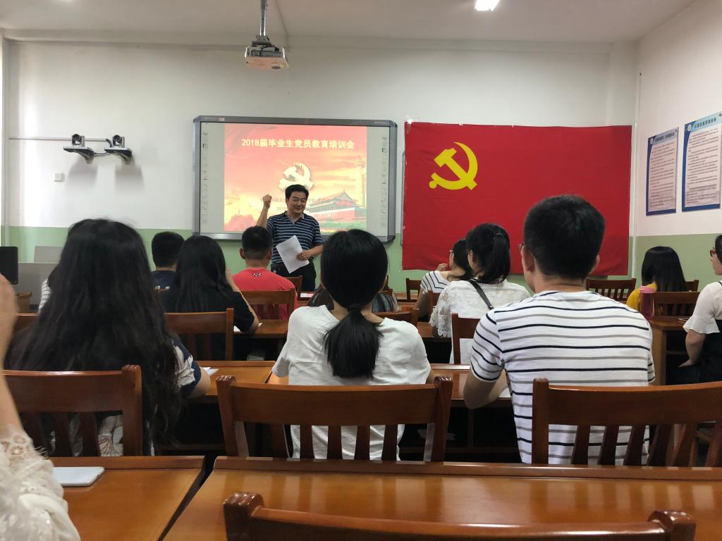 为引导毕业生党员站好最后一班岗,充分发挥先锋模范作用,2018年6月22日下午2点30分,2018届毕业生党员最后一次党课在万象城体育awcsport第七教学楼微格教室举行。会议由allwincity万象城党委书记韩振来,党委副书记孟德洋老师主讲,2016级辅导员赵华磊老师和2018届全体毕业生党员参加。