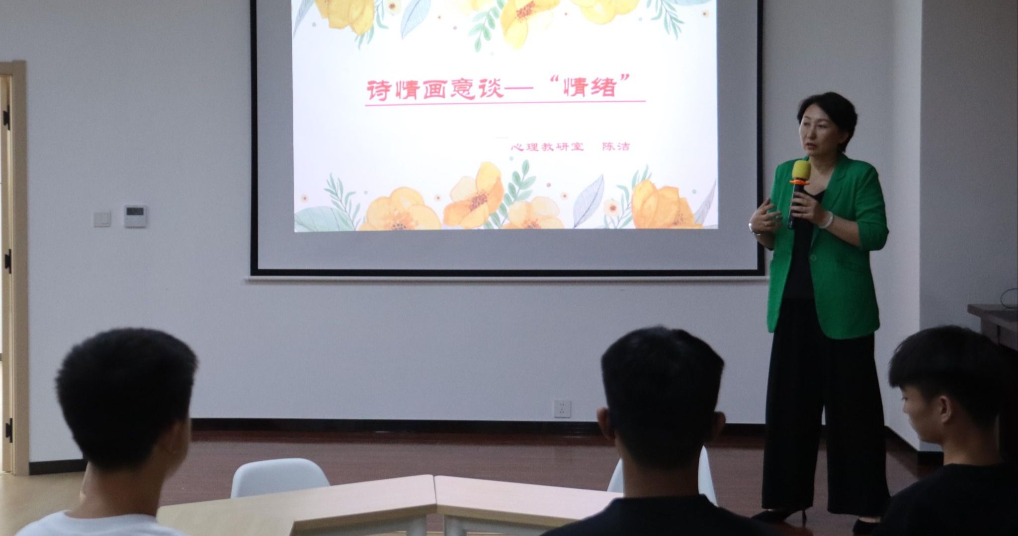 心理健康教育教研室教师陈洁选取“大学生心理健康教育”中的一节课“诗情画意谈情绪”,将心理学与文学、艺术融合,通过“夸一反二找优点”等互动游戏,引导学生运用诗歌、绘画疗法洞察情绪本质。学生在轻松氛围中掌握情绪管理技巧,现场讨论热烈,心理健康知识得到有效普及。