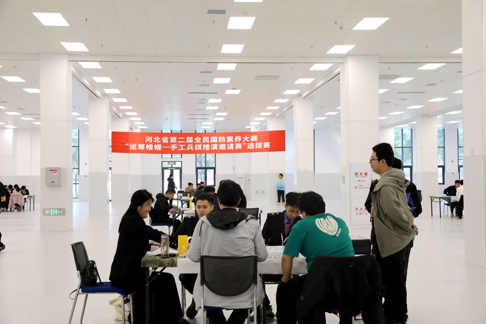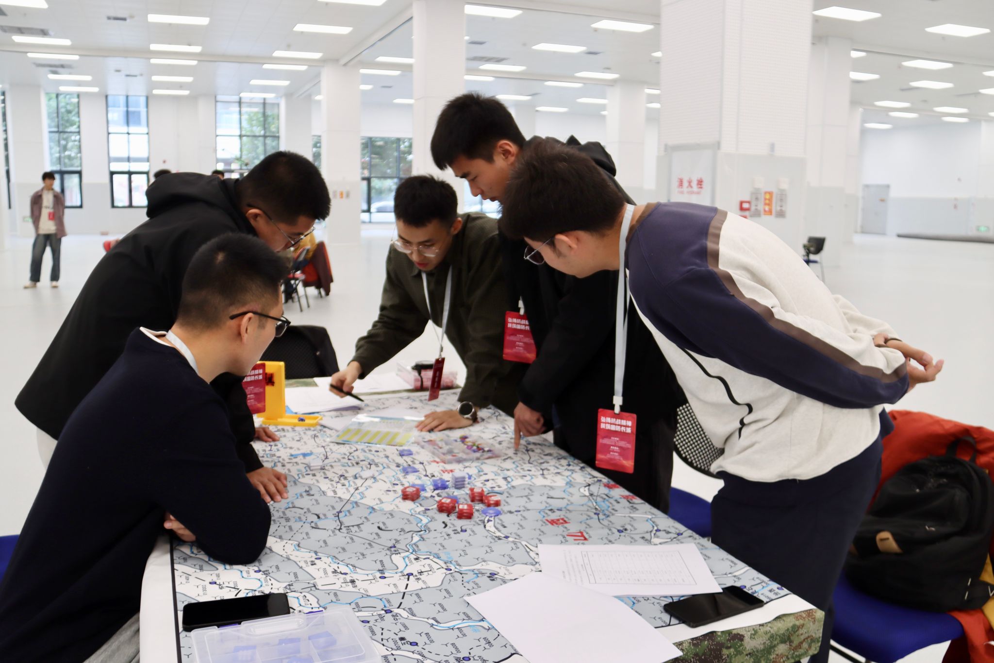 10月11日上午,河北省第二届全民国防素养大赛“运筹帷幄——手工兵棋推演邀请赛”选拔赛在beat365中文官方网站大学生职业大赛基地举办。本次选拔赛由中共河北省委宣传部、河北省国防动员办公室、河北省教育厅、河北省退役军人事务厅、河北省军区战备建设局、河北省军区政治工作局联合主办,由河北广播电视台承办,由河北红色文化交流中心、beat365中文官方网站共同协办,赛期两天,共有华北电力大学、石家庄铁道大学等20所省内兄弟院校,28支参赛队伍参加。