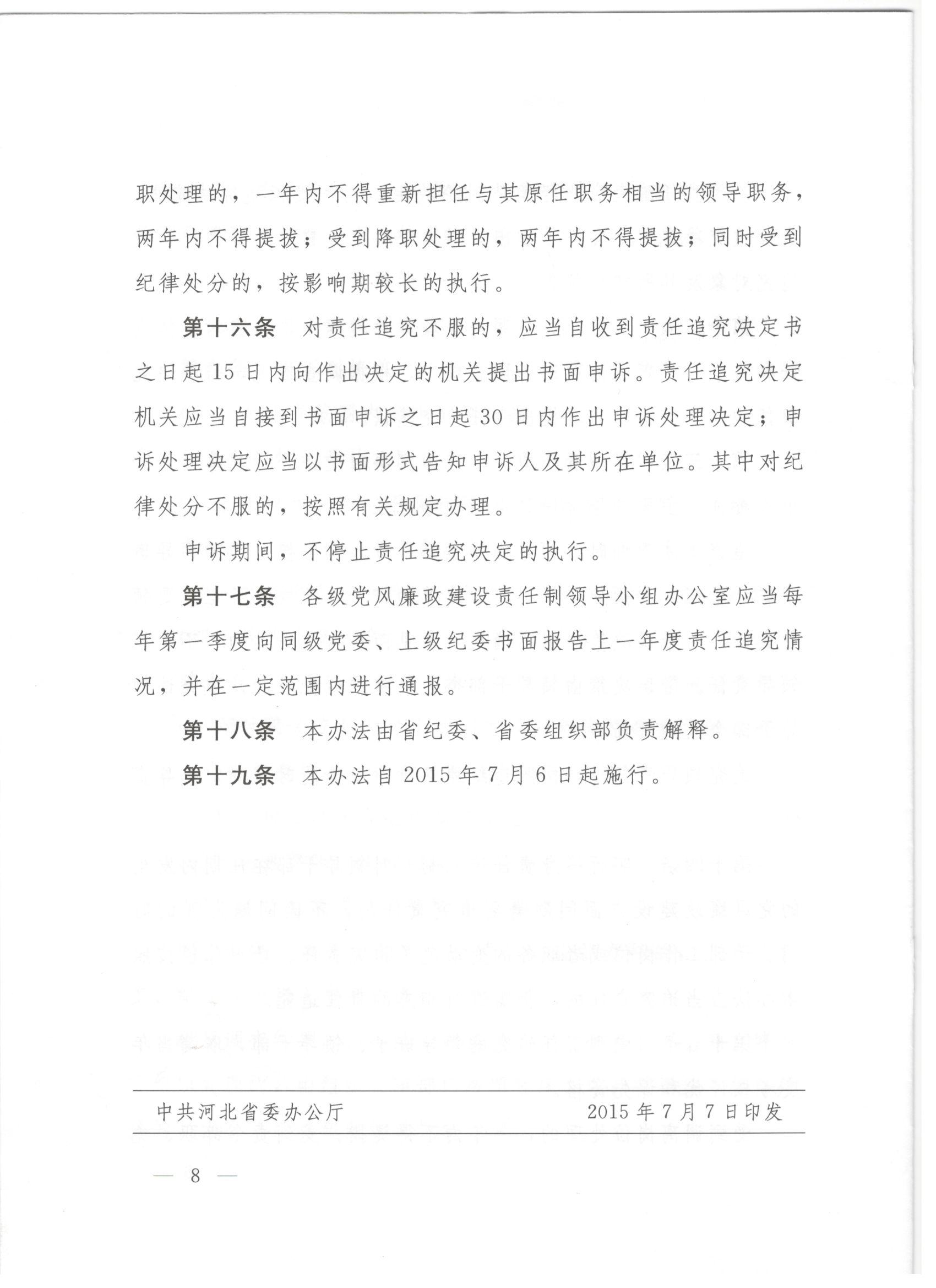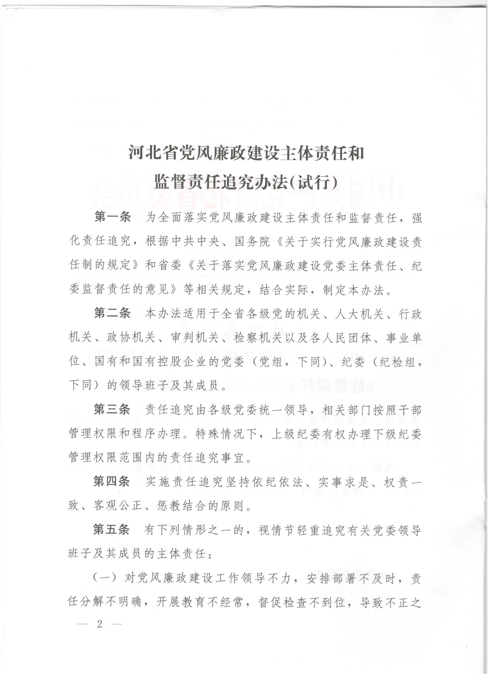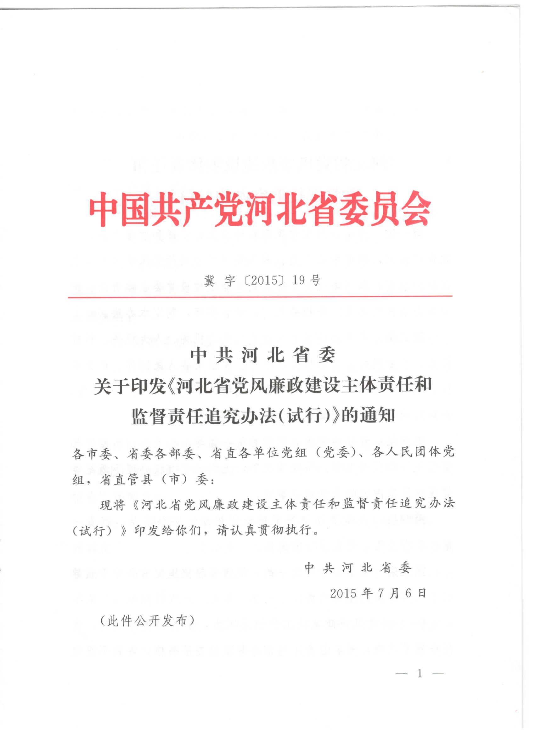 中共河北省委关于印发《河北省党风廉政建设主体责任和监督责任追究办法(试行)》的通知