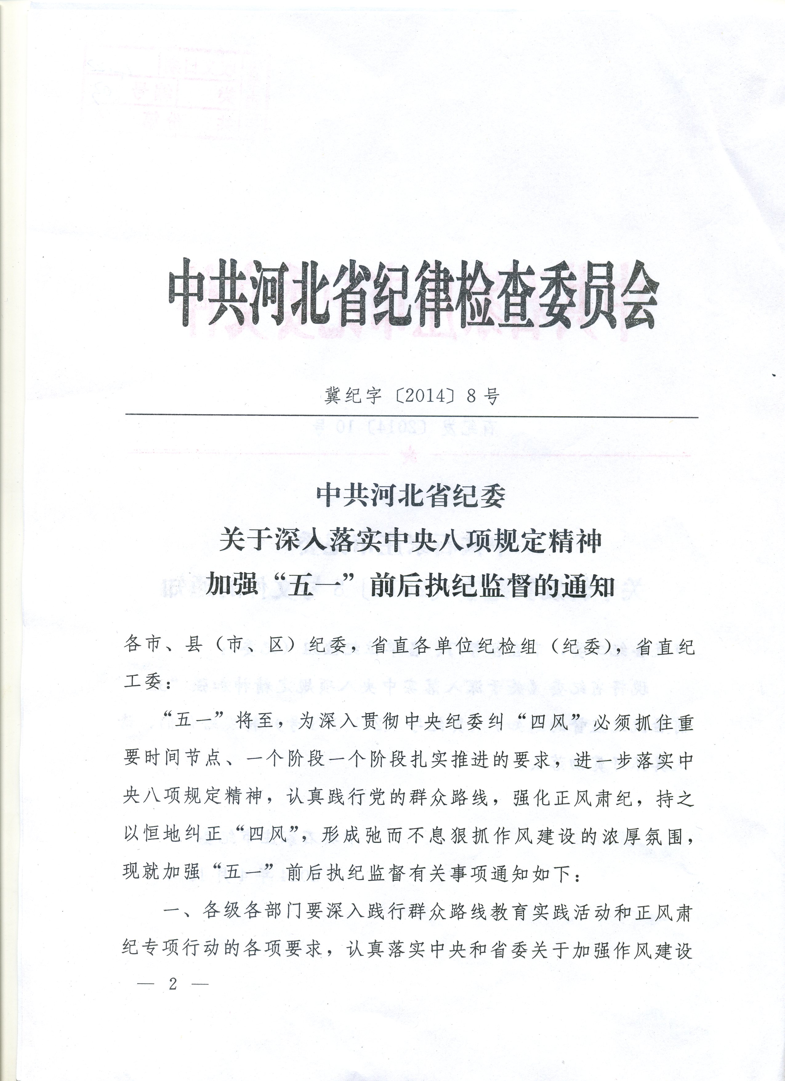 关于严肃落实《中共石家庄市纪委关于转发冀纪字〔2014〕8号文件的通知》的通知