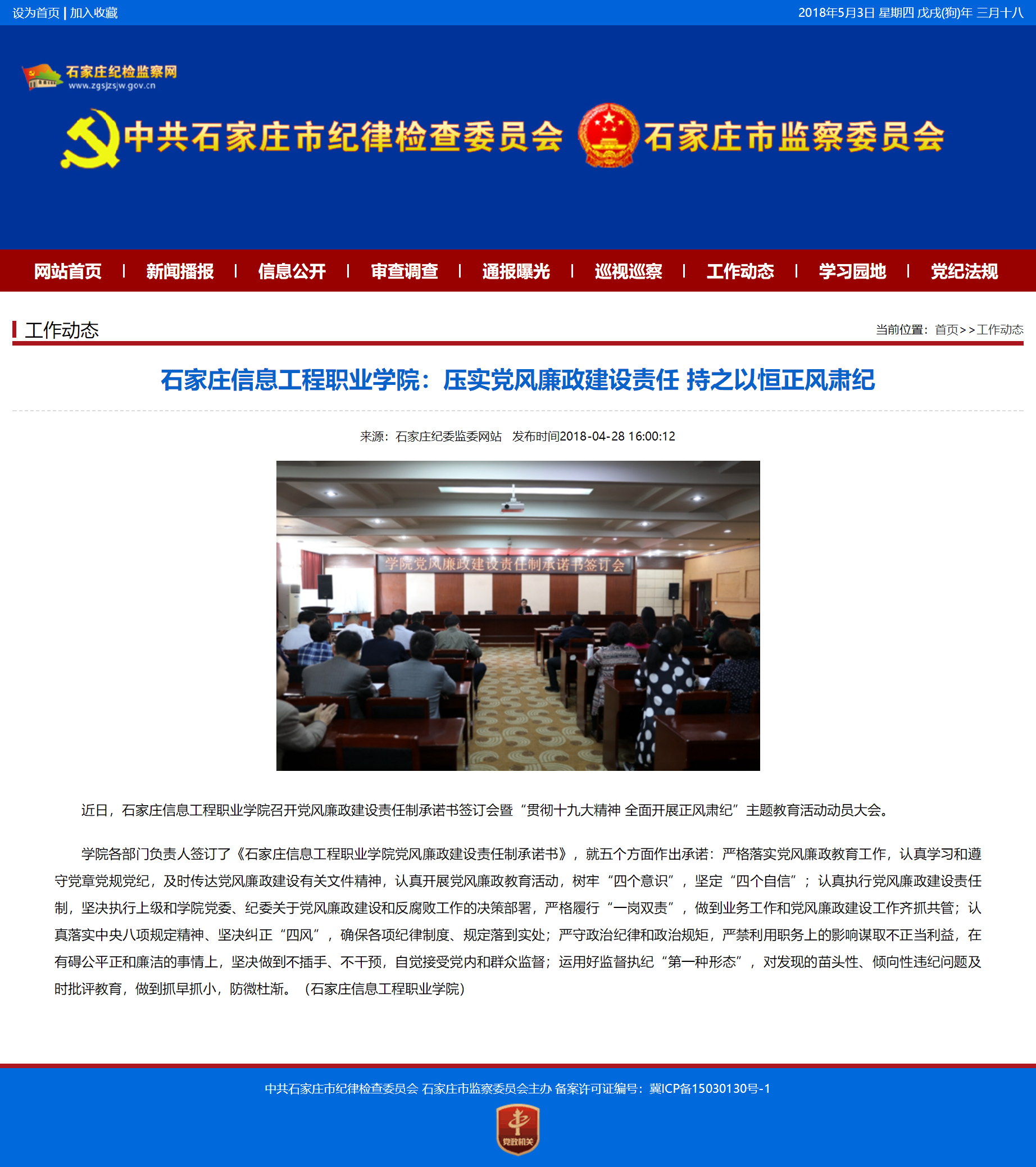石家庄市纪委监委网站对beat365官网召开党风廉政建设责任制承诺书签订会予以报道