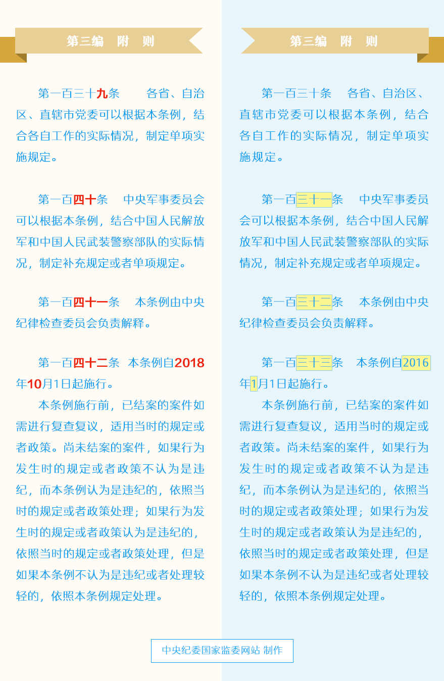 《中国共产党纪律处分条例》修订前后对照表PDF格式下载