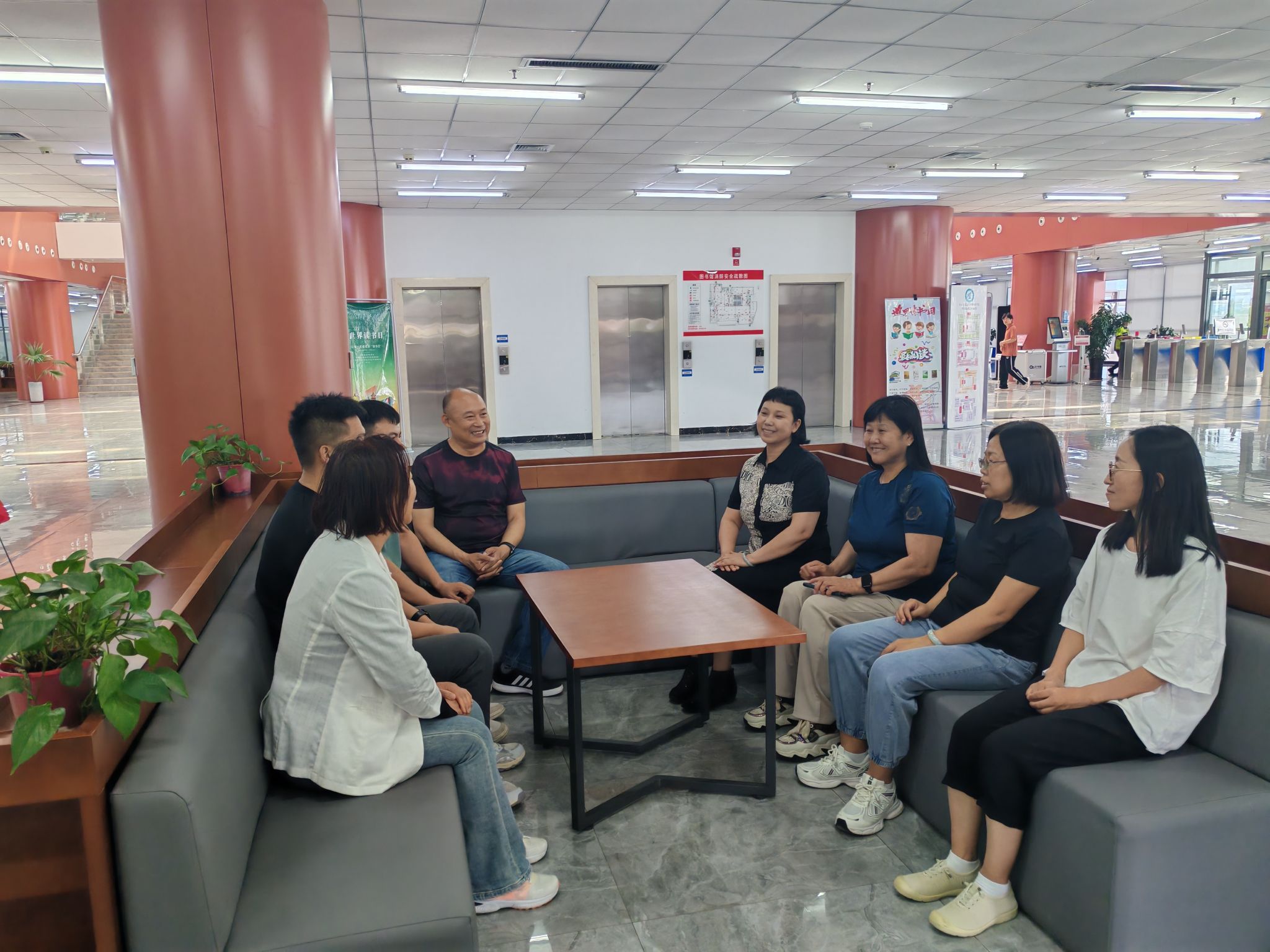 在beat365官网张馆长和相关工作人员的陪同下,石家庄工商职业学院馆长一行来到图书馆二楼大厅休闲阅读区进行了座谈交流,双方围绕资源建设、流通服务和空间建设等展开讨论与经验分享,特别是对数字建设、读者服务创新、空间优化等核心议题展开了详细讨论。