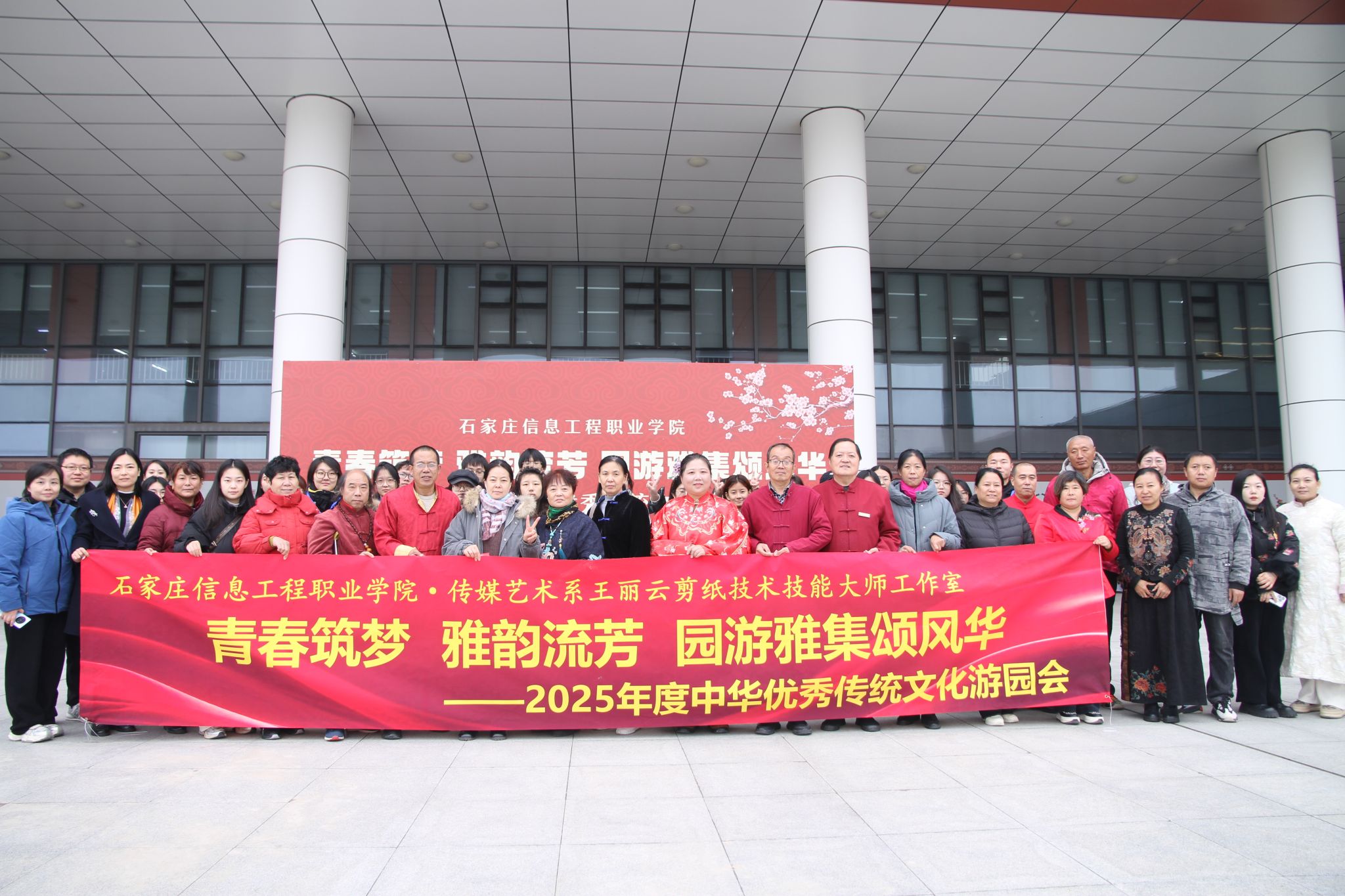 10月23日下午,由传媒艺术系王丽云剪纸技术技能大师工作室联合组宣部、图书馆、学生处共同举办的2025年度中华优秀传统文化游园会在图书馆二楼平台圆满落幕。党委副书记马福恒,副院长赵伟,纪委书记赵惠娟,党委委员、组宣部部长范成宝出席活动。