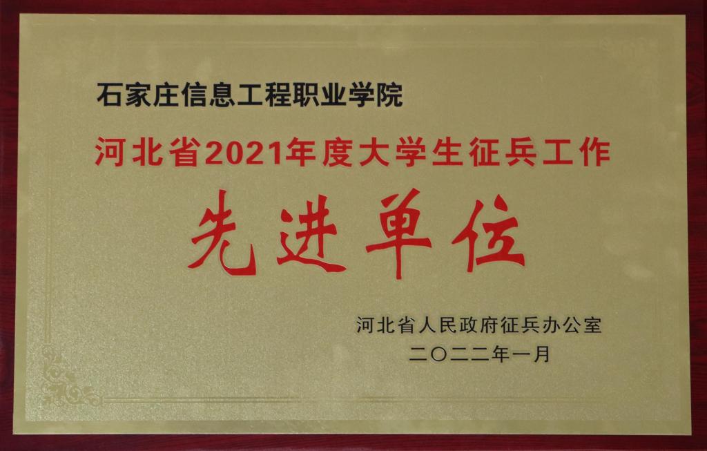 近日,河北省人民政府征兵办公室表彰通报了2021年度全省征兵工作先进单位和先进个人,beat365官网被评为河北省2021年度大学生征兵工作先进单位。