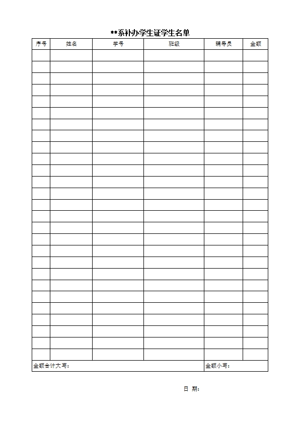 补办学生证名单 (样表)