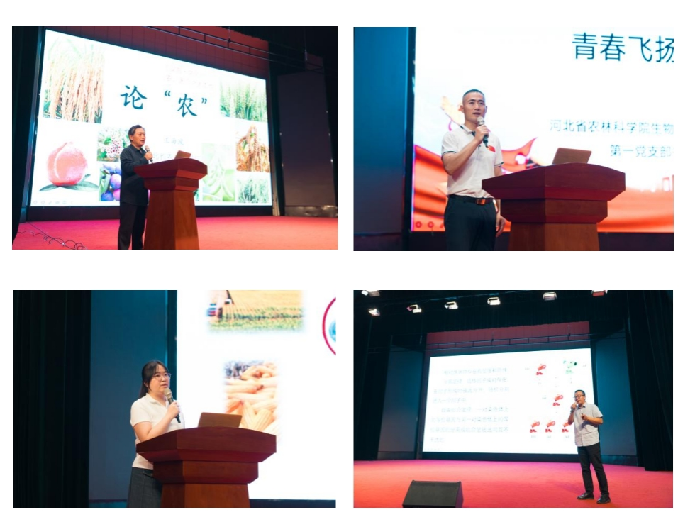 本次活动采用“科学家论农+思政教育+科普展示”三位一体的模式,为师生带来一场别开生面的科普盛宴。河北省农林科学院原副院长王海波以《论“农”》为题,从农耕文明溯源到现代农业展望,用深入浅出的讲解展现了农业文明的博大精深;朱金永书记以《青春之问,奋斗作答》为主题,结合12年军旅生涯和农业科研经历,为师生带来一堂感人至深的思政课;赵璞博士、周硕副所长分别就玉米育种发展、转基因技术应用等农业科技前沿领域作了精彩报告。