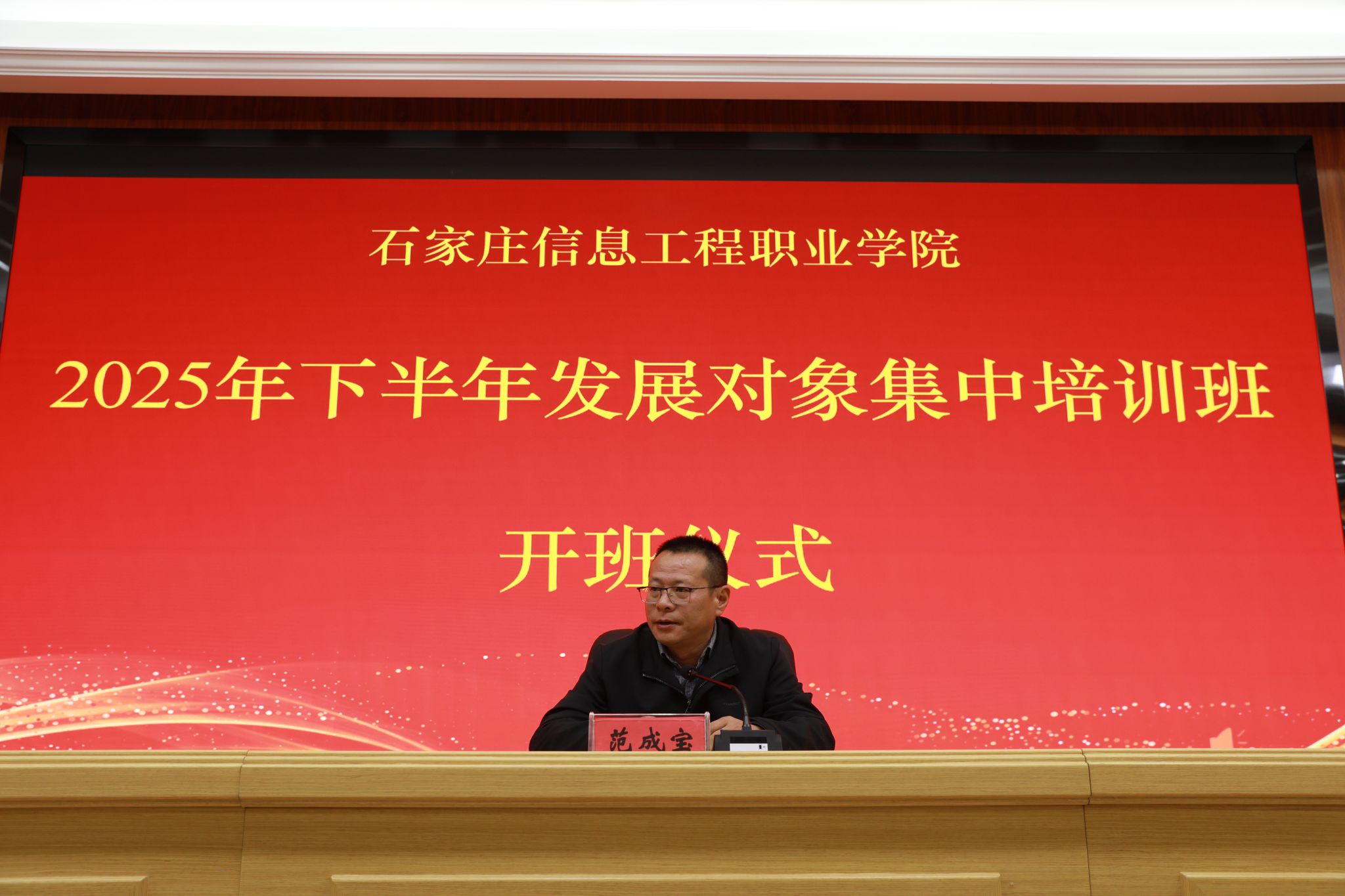 为进一步规范党员发展工作,加强对党员发展对象的教育培养,保证党员发展质量,10月24日,beat365官网2025年下半年党员发展对象集中培训班开班仪式在启智报告厅举行。学院党委委员、组宣部部长范成宝出席并作动员讲话。
